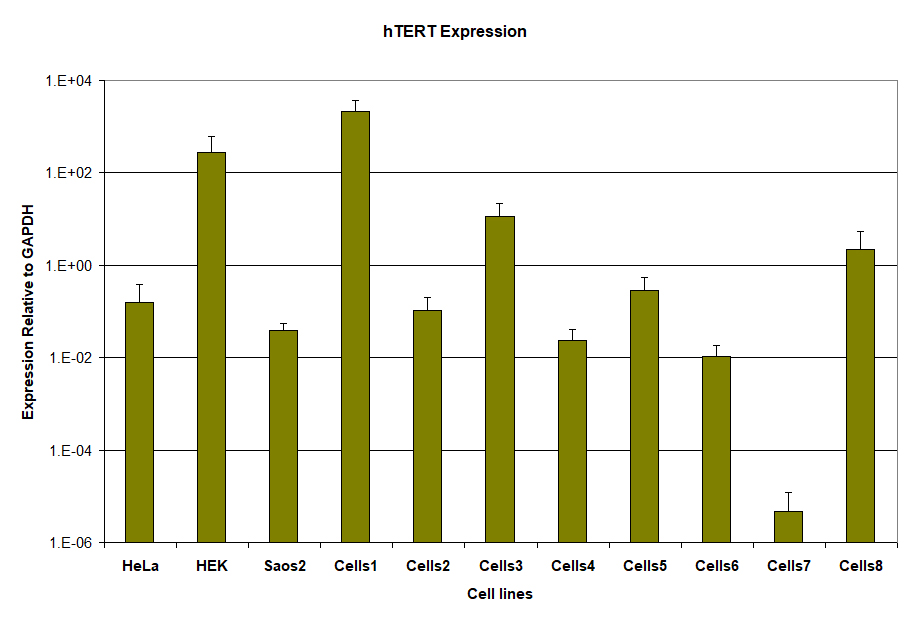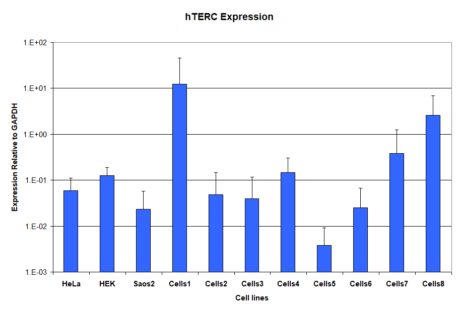 In addition to providing telomerase activity measurements, using RT-qPCR analysis we can also evaluate transcription of the telomerase mRNA (TERT) and telomerase RNA component (TERC) in the same samples.