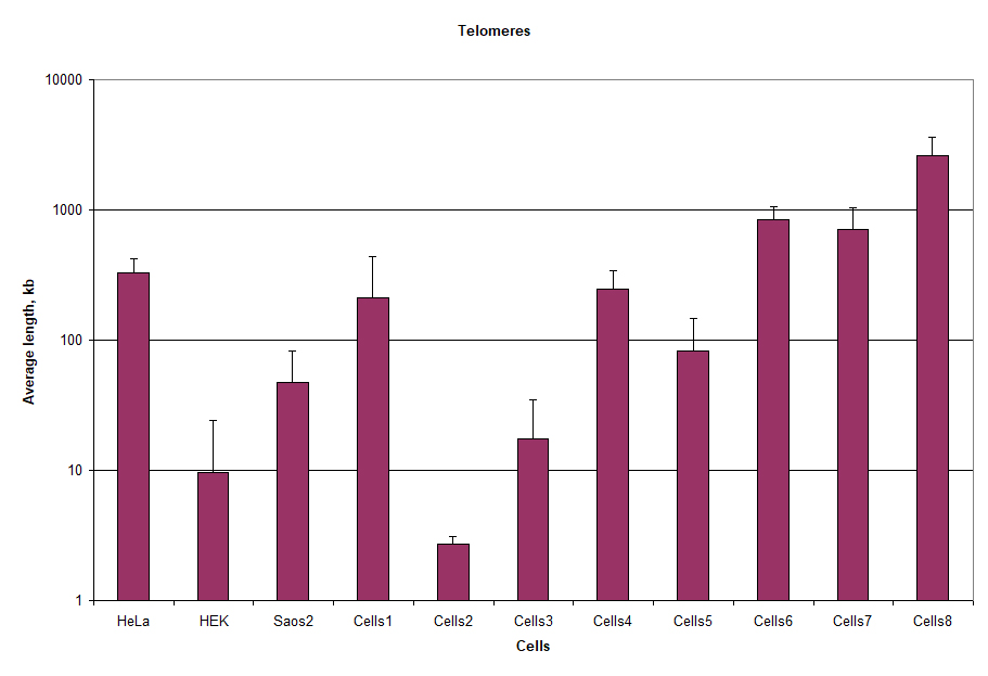 Capital Bioscences, Inc. employs a simple and reproducible method to measure absolute telomere length using quantitative real-time polymerase chain reaction protocol supplied with oligomer standards. The primers are designed to generate a short, fixed-length product. In contrast to the described SYBR green-based methods, we can use our proprietary primers providing attachment of only one fluorescent group to each amplicon produced in the assay both for amplification of the telomeric repeats and for amplification of a reference single-copy gene sequences. This produces extended linear ranges for the calibration curves used in this method and a better estimation of the length for short telomeres.